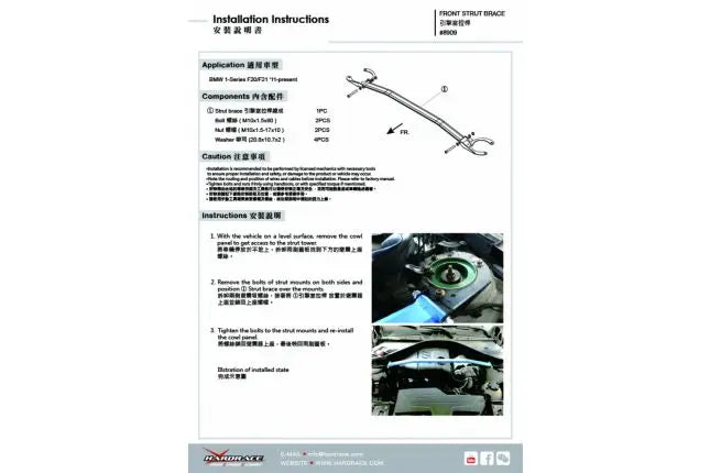 Hardrace - Front Strut Brace Bmw 1 Series