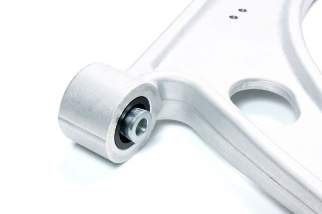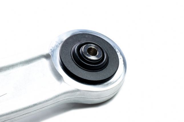 The front lower control arm features improved construction and materials made of forged aluminum alloy to offer superior strength, durability and yet remain lightweight over the factory stamped steel pieces. The equipped high quality pillow ball bushings also provide greater handling response.