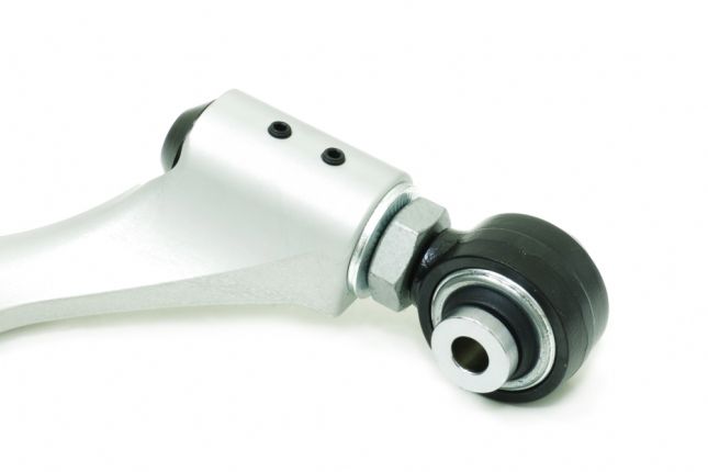 The camber kit allows fine adjustments to the front end camber setting of the vehicle. It can either help maximize wheel contact patch to improve cornering grip or get your car back to original alignment specs after lowering to prevent uneven tyre wear. The arms are made of anodized CNC billet aluminum alloys to offer highest durability and strength but remain lightweight. The premium quality pillow ball bearings and ball joints equipped also provide much more precise and solid handling response over the factory components.