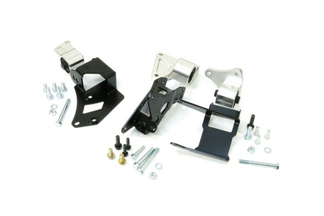 The engine mount kit is required when performing a K-series engine swap into Civic EK. It features 5mm thick steel alloy construction for the brackets, offering superior strength and durability to withstand higher horsepower and torque output. With the reinforced soild ruubber bushings, this kit also capably eliminate unwanted vibrations and flex of the mountings under hard acceleration, braking and cornering, ensuring the maximum transfer of power to the wheels.