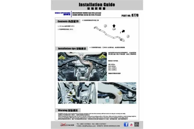 Sway Bar affects the handling and the car's over steer and under steer. It ties the lower suspension links together across the front or back, will keep your car flat in turns instead of leaning over to one side. Hardrace sway bars provide better control especially at high speeds cornering