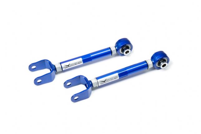 The adjustable arms allow fine adjustments to the rear end alignment setting of the vehicle. It can either help achieve desired handling characteristic or get your car back to original alignment specs after lowering. The arms are made of high-strength steel alloys to offer high durability and strength. With premium quality pillow ball bushings equipped, they also provide more precise and solid handling response over the factory components.