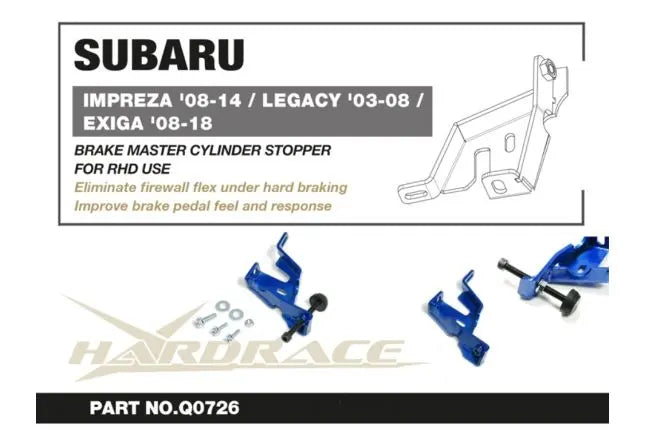 Hardrace teatab uhkusega WRX/STI GR&GV / LEGACY BL&BP / EXIGA peapiduri silindri stopperi lisamisest. See vähendab tulemüüri läbipainet tugeva pidurdamise ajal, muutes piduripedaali jäigemaks ja tundlikumaks.