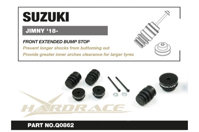 Pikendatud põrkerauad on mõeldud tõstetud JB64/74 Jimnydele. Need piiravad vedrustuse ülespoole liikumist, hoides ära amortisaatorite kahjustusi üleliigse kokkusurumise ja järsu põhjasurumise tõttu. Suurte rehvide kasutamisel aitavad pikendatud põrkerauad tagada ka suurema kliirensi, et rehvid ei hõõruks sisemisi rehvikoopaid.