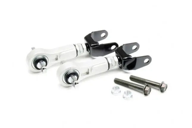 Varrekomplekt võimaldab sõiduki tagaosa kokkujooksu peenhäälestamist. See aitab saavutada soovitud juhitavust või taastada auto algse joonduse pärast madalamaks langetamist, et vältida rehvide ebaühtlast kulumist. Õõtsad on valmistatud anodeeritud CNC-toorikuga alumiiniumisulamist, et pakkuda suurimat vastupidavust ja tugevust. Varustatud esmaklassilised padjakuulpuksid pakuvad ka täpsemat ja kindlamat juhitavust võrreldes tehasekomponentidega.