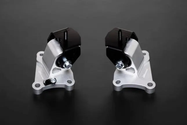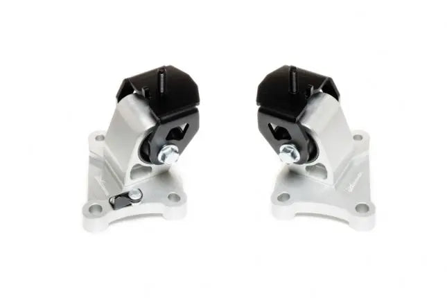 Tugevdatud mootorikinnitused on valmistatud tahketest kõvastunud kummist puksidest ja CNC-töödeldud alumiiniumsulamist korpustest. Need pakuvad paremat tuge ja otsesemat ühendust jõuülekande ja šassii vahel võrreldes originaalkinnitustega. Väiksema mootori liikumise ja parema stabiilsusega saab juht kogeda oluliselt väiksemat võimsuskadu kiirendamisel, paremat käiguvahetust ja juhitavust.